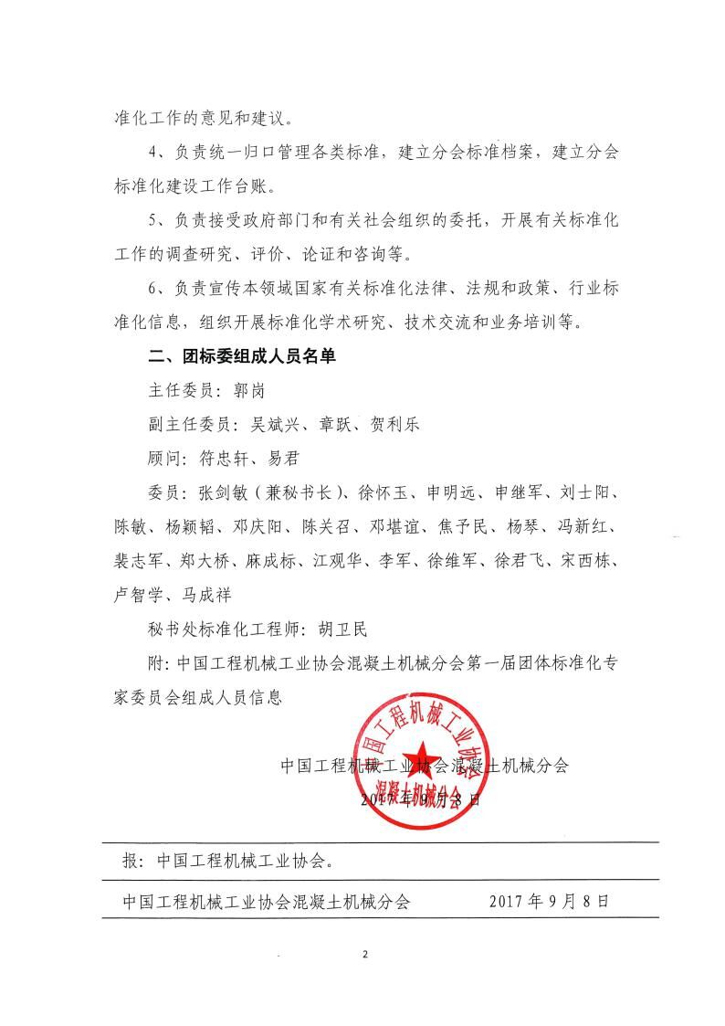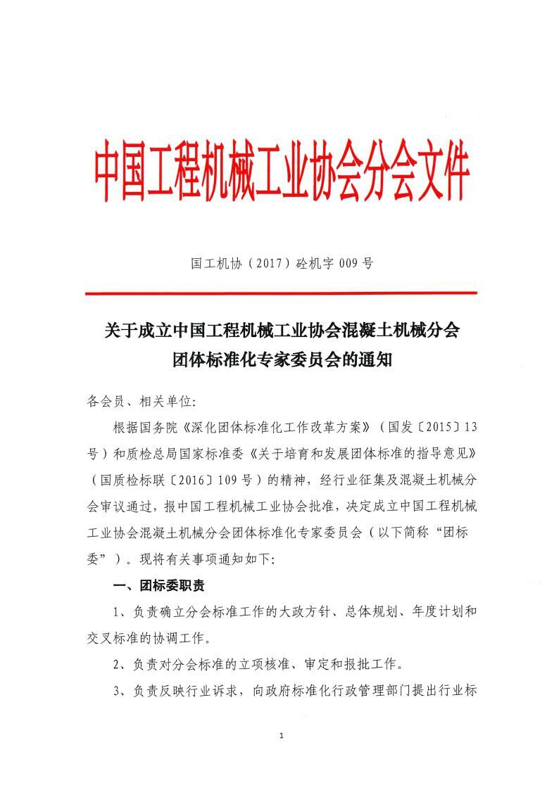 《關(guān)于成立中國工程機(jī)械工業(yè)協(xié)會混凝土機(jī)械分會團(tuán)體標(biāo)準(zhǔn)化專家委員會的通知》