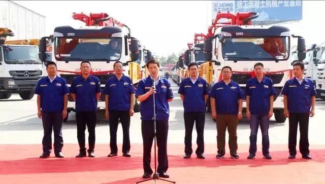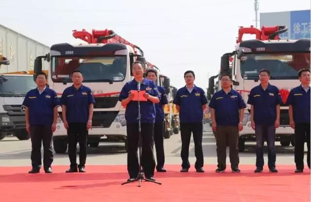 半年時間內(nèi),這已是徐工施維英第7次出口訂單批量發(fā)車儀式。儀式現(xiàn)場人頭攢動、彩旗飄揚(yáng)、禮炮齊鳴, 一臺臺披戴紅花的混凝土機(jī)械設(shè)備就像即將出征的戰(zhàn)士,整齊列隊(duì),等待出征前的檢閱。